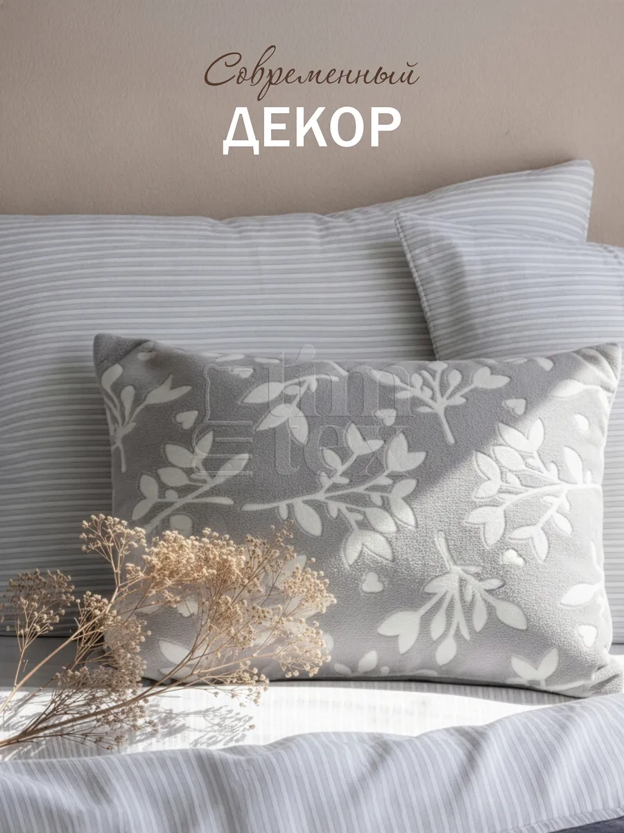 Поверхность подушки слегка пушистая, мягкая и приятная на ощупь. Ткань выглядит аккуратно и дорого, создавая ощущение уюта и комфорта, не перегружая интерьер. Подушка подходит как для спальни, так и для гостиной или детской комнаты.
