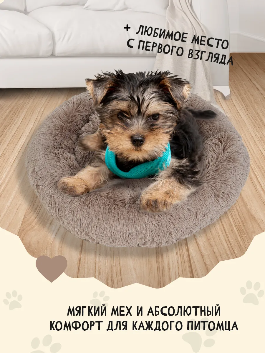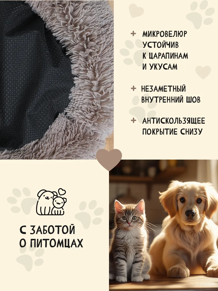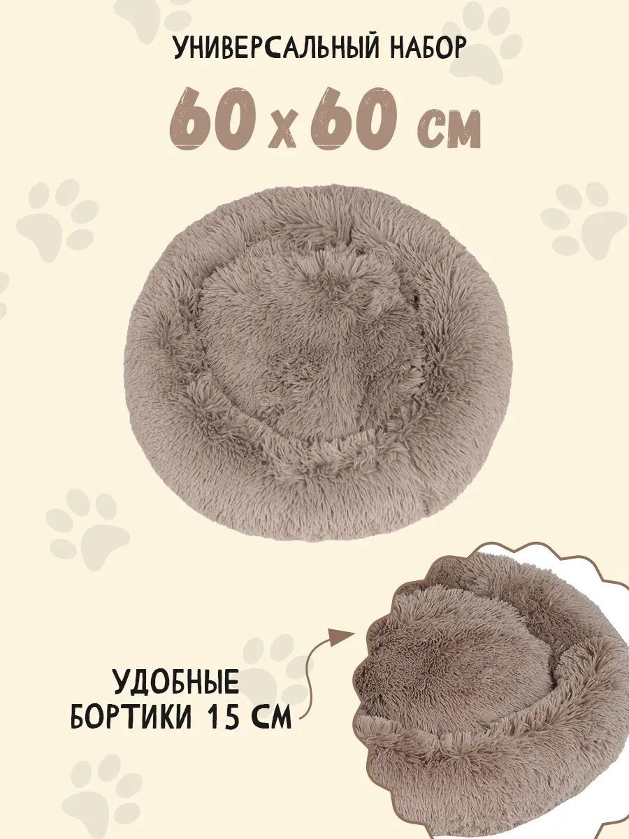 Круглая меховая лежанка TIM-TEX & Pet Collection диаметром 60 см - это удобное и комфортное спальное место для домашних питомцев. Подстилка пушистая, мягкая и теплая. Бортики создают уютную кровать-гнездо и одновременно служат подушкой под голову. Плюшевый товар предназначен для котов, котят, щенков, собак мелких, средних, крупных пород. Большой мягкий коврик содержит безопасный наполнитель. Он отличается долговечностью, высокими водоотталкивающими свойствами и малым весом, что делает лежанку легкой и практичной. Ткань собачьего и кошачьего кроватки-кокона не впитывает запахи, безопасна для шерсти. Приятная фактура материалов обеспечит уют, отдых и здоровый сон. Мягкая круглая лежанка подходит для стирки в стиральной машинке на деликатном режиме при 30 градусах. Благодаря СЪЕМНОМУ ЧЕХЛУ вам не придется стирать весь лежак для животных целиком и переживать за то, что он потеряет форму и внешний вид. Зоотовар маленького размера не займет много места, а благодаря коричневому оттенку впишется в стиль вашего дома. Лежак, подушка, коврик, подстилка, матрас, гамак, спальное место для кошек и собак. Мягкая, меховая лежанка для животных из искусственного меха. Круглая кровать для кошек, собак, грызунов, шиншилл, хомяков, хорьков, котят, щенков. Круглый лежак подойдет как для мелких, так средних и крупных пород, с легкостью заменит кошачий или собачий коврик. Экологичный наполнитель не навредит шерсти питомца.