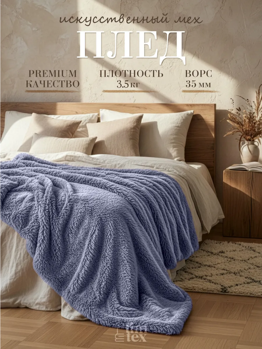 Плед TIM-TEX меховой 220х260 см для дома - это больше, чем просто покрывало на кровать или диван. Двусторонний пушистый плед из искусственного меха красиво дополняет интерьер, создавая атмосферу уюта в любом помещении. Будь то спальня, гостиная или детская комната. Особенно меховое покрывало на диван выручит холодными вечерами. Закутались в мягкий плед и забыли о холоде, а также обо всех проблемах. Ведь мягкий шерстяной плед на кровать моментально согревает, расслабляет и дарит уют. Плед травка с длинным пушистым ворсом (длина: 4 см, плотность: 540 гр/м²) очень мягкий и приятный к телу. Такие материалы, как флис и велюр, гипоаллергенные, поэтому плед можно использовать, как маленький детский плед для малыша. Дети оценят то, какой наш плюшевый плед для мальчика или девочки милый и нежный. Под пледом очень приятно спать. Но его удобно использовать не только как одеяло, но и как покрывало для кровати, декоративную накидку на диван, в том числе угловой, или кресло. При этом наши пледы евро совсем некапризные в уходе.