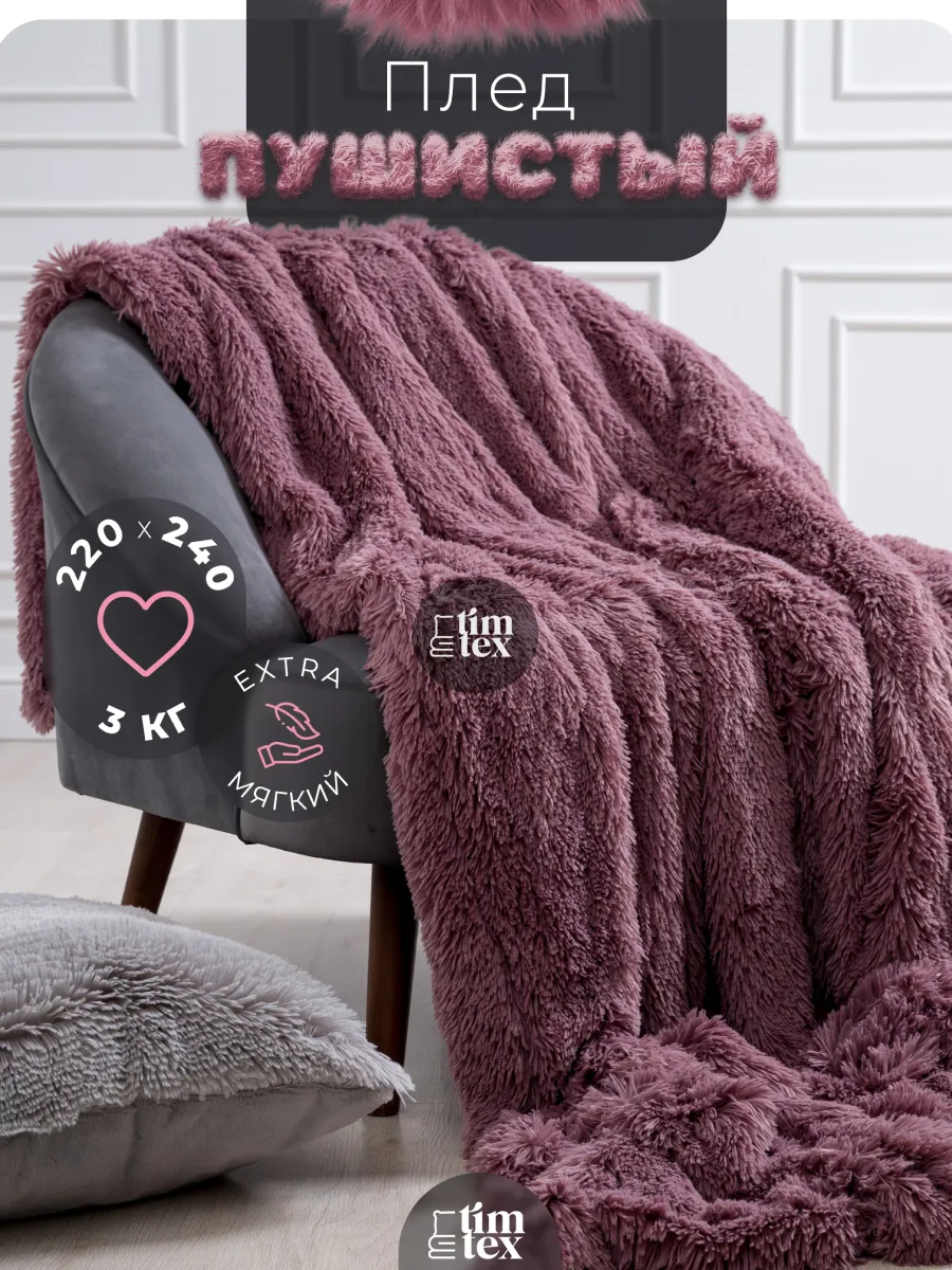 Двухсторонний пушистый плед евро 225х245 см от TIM-TEX - это больше, чем просто покрывало на диван или кровать. Плед из искусственного меха нашего производства имеет плотность ворса 540 гр/м² и длину 4 см, а весит 3 кг, что выгодно отличает его от любых других. Он невероятно мягкий и приятный на ощупь, в нем хочется укутаться и остановить мгновение! Выполнен из гипоаллергенного материала.