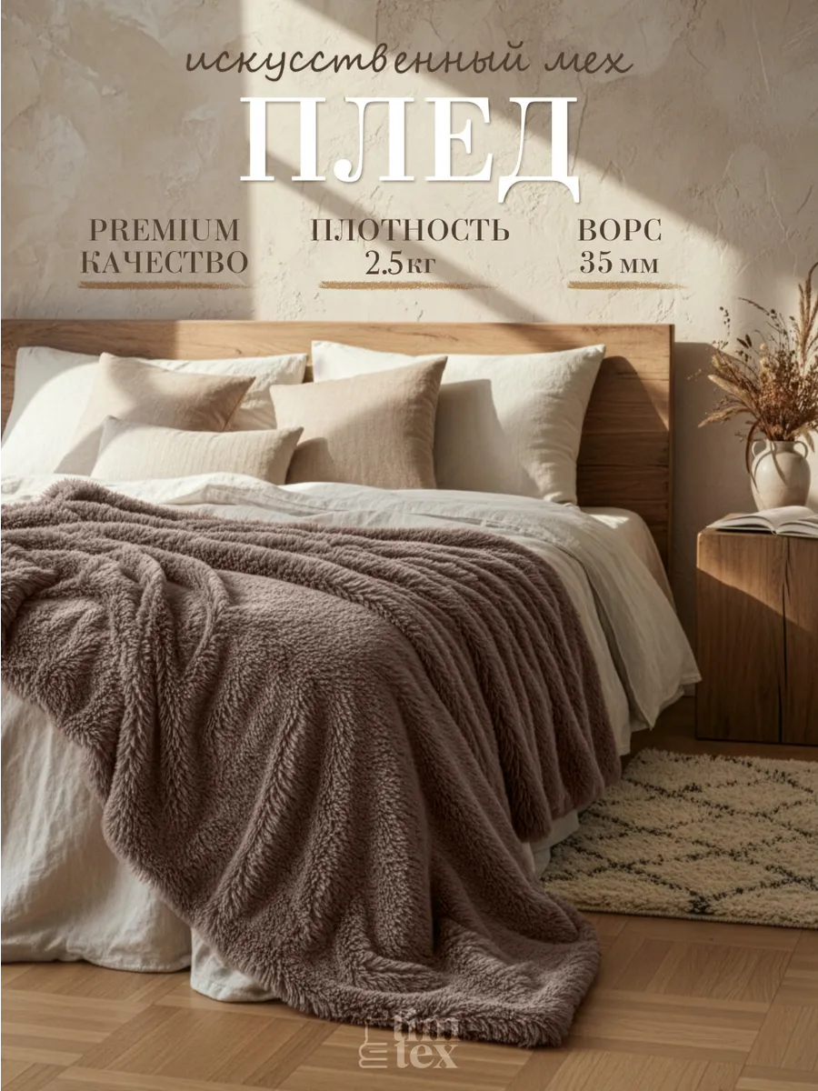 Плед TIM-TEX меховой 160х220 см для дома - это больше, чем просто покрывало на кровать или диван. Двусторонний пушистый плед из искусственного меха красиво дополняет интерьер, создавая атмосферу уюта в любом помещении. Будь то спальня, гостиная или детская комната. Особенно меховое покрывало на диван выручит холодными вечерами. Закутались в мягкий плед и забыли о холоде, а также обо всех проблемах. Ведь мягкий шерстяной плед на кровать моментально согревает, расслабляет и дарит уют. Плед травка с длинным пушистым ворсом (длина: 4 см, плотность: 540 гр/м²) очень мягкий и приятный к телу. Такие материалы, как флис и велюр, гипоаллергенные, поэтому плед можно использовать, как маленький детский плед для малыша. Дети оценят то, какой наш плюшевый плед для мальчика или девочки милый и нежный. Под пледом очень приятно спать. Но его удобно использовать не только как одеяло, но и как покрывало для кровати, декоративную накидку на диван, в том числе угловой, или кресло. При этом наши пледы евро совсем некапризные в уходе.