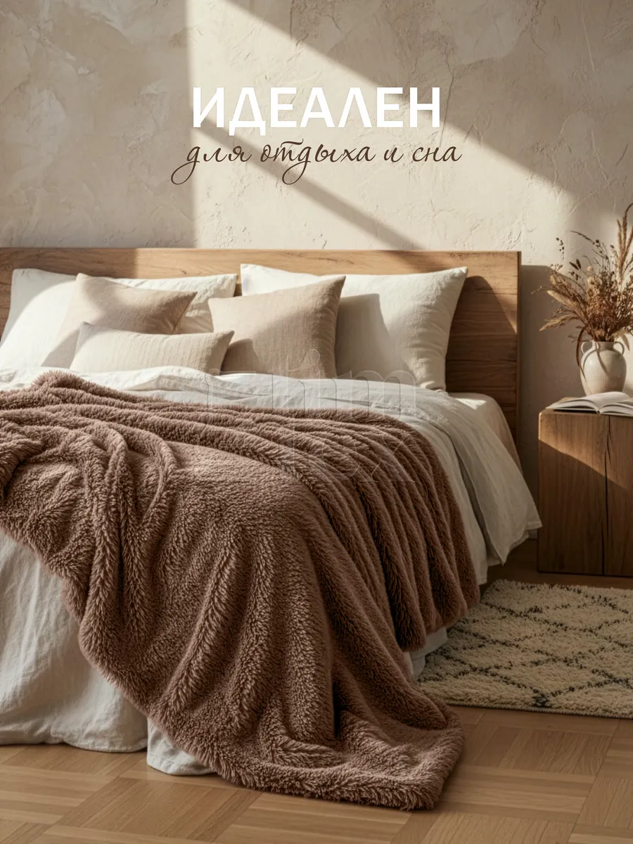 Плед TIM-TEX меховой 160х220 см для дома - это больше, чем просто покрывало на кровать или диван. Двусторонний пушистый плед из искусственного меха красиво дополняет интерьер, создавая атмосферу уюта в любом помещении. Будь то спальня, гостиная или детская комната. Особенно меховое покрывало на диван выручит холодными вечерами. Закутались в мягкий плед и забыли о холоде, а также обо всех проблемах. Ведь мягкий шерстяной плед на кровать моментально согревает, расслабляет и дарит уют. Плед травка с длинным пушистым ворсом (длина: 4 см, плотность: 540 гр/м²) очень мягкий и приятный к телу. Такие материалы, как флис и велюр, гипоаллергенные, поэтому плед можно использовать, как маленький детский плед для малыша. Дети оценят то, какой наш плюшевый плед для мальчика или девочки милый и нежный. Под пледом очень приятно спать. Но его удобно использовать не только как одеяло, но и как покрывало для кровати, декоративную накидку на диван, в том числе угловой, или кресло. При этом наши пледы евро совсем некапризные в уходе.