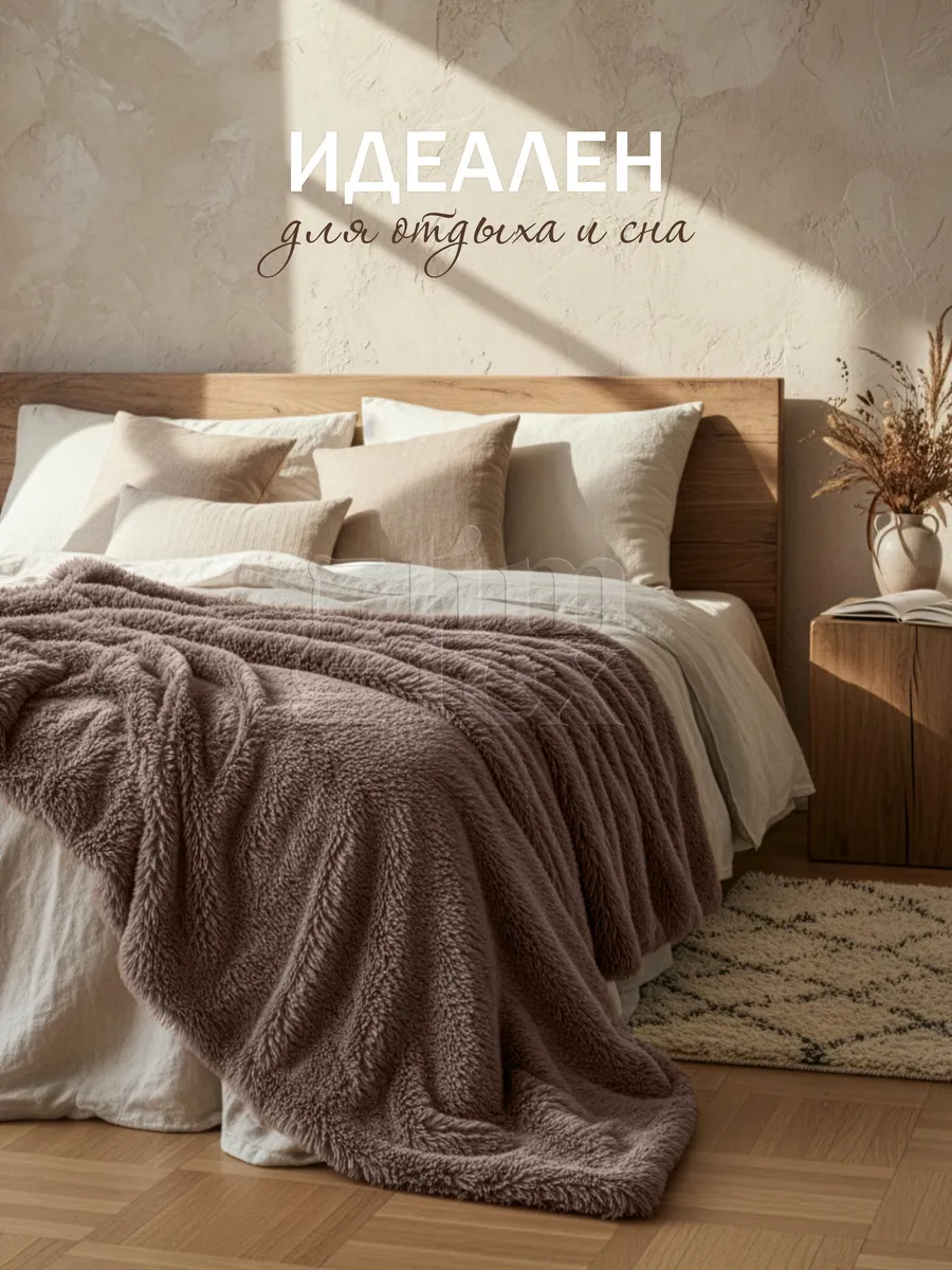 Плед TIM-TEX меховой 220х240 см для дома - это больше, чем просто покрывало на кровать или диван. Двусторонний пушистый плед из искусственного меха красиво дополняет интерьер, создавая атмосферу уюта в любом помещении. Будь то спальня, гостиная или детская комната. Особенно меховое покрывало на диван выручит холодными вечерами. Закутались в мягкий плед и забыли о холоде, а также обо всех проблемах. Ведь мягкий шерстяной плед на кровать моментально согревает, расслабляет и дарит уют. Плед травка с длинным пушистым ворсом (длина: 4 см, плотность: 540 гр/м²) очень мягкий и приятный к телу. Такие материалы, как флис и велюр, гипоаллергенные, поэтому плед можно использовать, как маленький детский плед для малыша. Дети оценят то, какой наш плюшевый плед для мальчика или девочки милый и нежный. Под пледом очень приятно спать. Но его удобно использовать не только как одеяло, но и как покрывало для кровати, декоративную накидку на диван, в том числе угловой, или кресло. При этом наши пледы евро совсем некапризные в уходе.