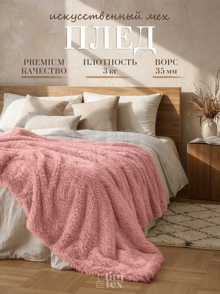 Плед TIM-TEX меховой 220х240 см для дома - это больше, чем просто покрывало на кровать или диван. Двусторонний пушистый плед из искусственного меха красиво дополняет интерьер, создавая атмосферу уюта в любом помещении. Будь то спальня, гостиная или детская комната. Особенно меховое покрывало на диван выручит холодными вечерами. Закутались в мягкий плед и забыли о холоде, а также обо всех проблемах. Ведь мягкий шерстяной плед на кровать моментально согревает, расслабляет и дарит уют. Плед травка с длинным пушистым ворсом (длина: 4 см, плотность: 540 гр/м²) очень мягкий и приятный к телу. Такие материалы, как флис и велюр, гипоаллергенные, поэтому плед можно использовать, как маленький детский плед для малыша. Дети оценят то, какой наш плюшевый плед для мальчика или девочки милый и нежный. Под пледом очень приятно спать. Но его удобно использовать не только как одеяло, но и как покрывало для кровати, декоративную накидку на диван, в том числе угловой, или кресло. При этом наши пледы евро совсем некапризные в уходе.